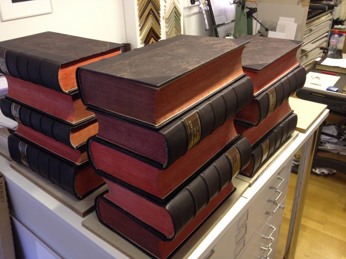 Mit viel Liebe zum Detail und mit Know-how repariere ich sorgsam Ihr Lieblingsstück. Sei es Ganzleder mit Bünden, Pergamentbände oder Leinenumschläge mit Titel. Ich achte auf originalgetreues Wiederherstellen und versuche möglichst alles zu erhalten, damit Ihr Buch nicht an Wert verliert. So können Sie wieder mit viel Freude darin blättern und es hält sicher für die nächste Generation.