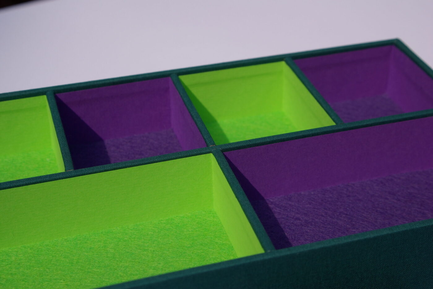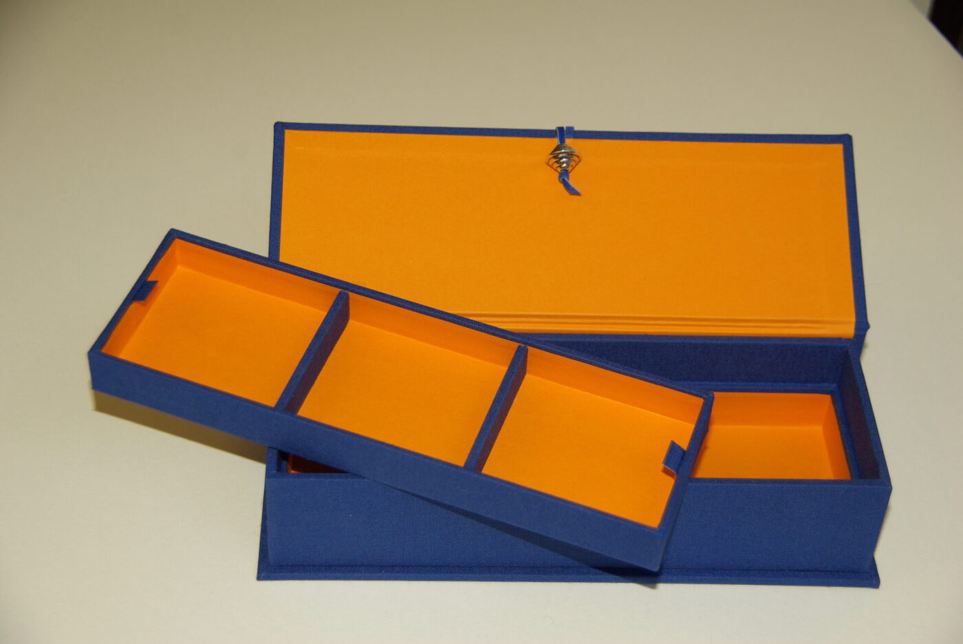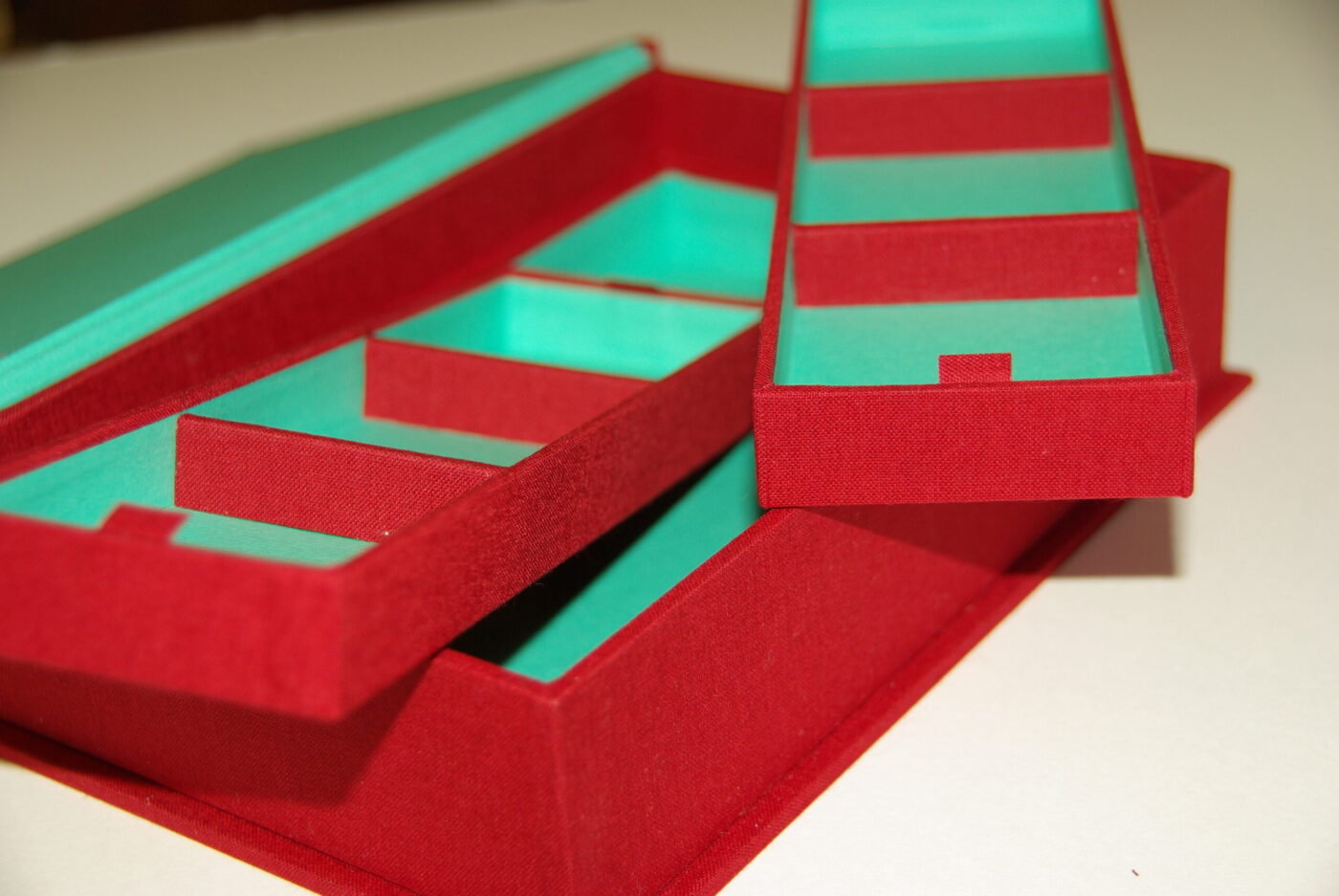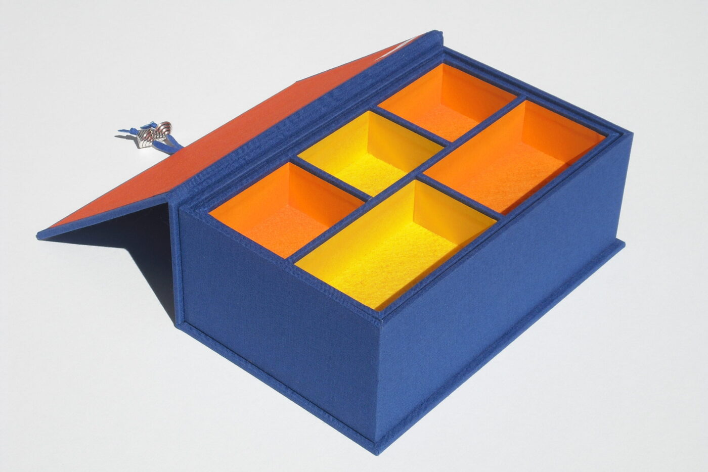 Mit viel Freude und Kreativität fertige ich auf Ihren Wunsch die passende Box für Ihre Lieblingsstücke in gewünschter Form, Farbe und Grösse an. Die Einteilung der Fächer ist frei wählbar. Gerne setze ich es so für Sie zusammen, damit Sie lange Freude daran haben.